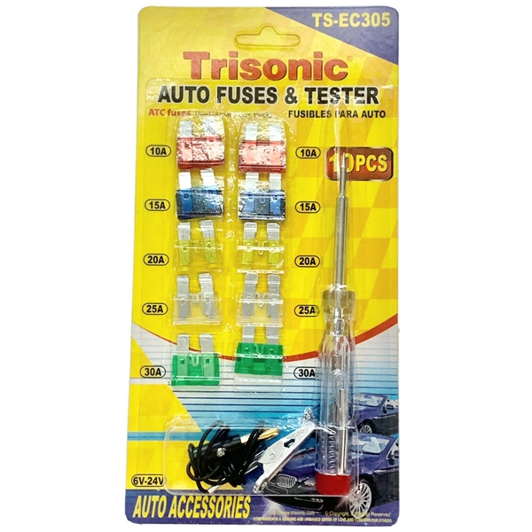 10 Blade Automotive Fuses 3 to 30A Voltage Test Tester 6-12-24V with Alligator Clip Assortment Kit Standard and Mini Auto Fuse