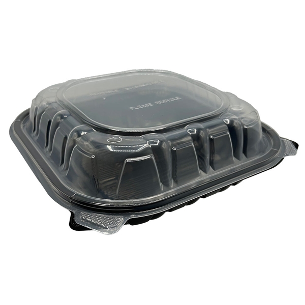 9x9 1-Compartment Hinged Plastic Container, Black/Clear, 150/cs