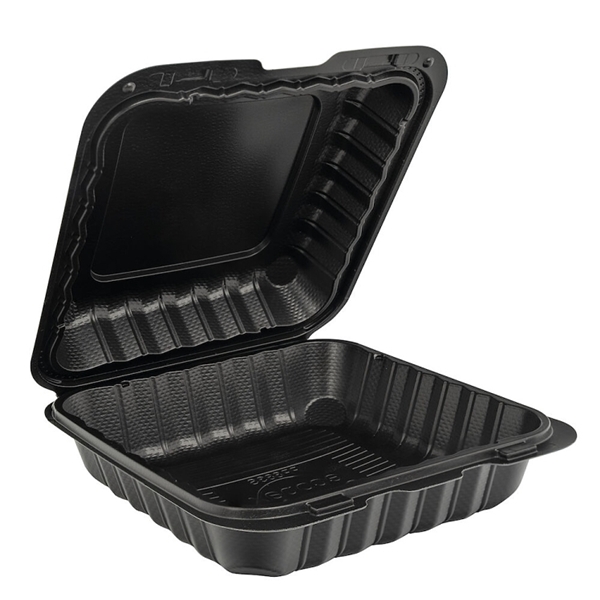 9x9 1 Compartment Black Hinged Container, Microwaveable, 150/cs