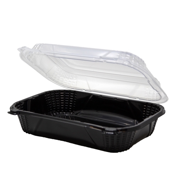 10x9 Polypropylene Hinged Container, Black/Clear, 10.5x9.25x3.25, 150/cs