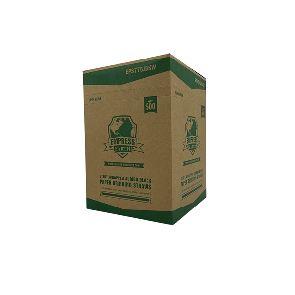 Empress Earth Paper Straws are an environmentally friendly alternative to plastic straws. The natural fiber, paper straws are fully recyclable and biodegradable, making them a more sustainable choice that s safer for oceans. Whether it s required by the state or a conscious choice, Empress Earth paper straws are sturdy and ideal for cold drinks. The eco-friendly paper straws are conveniently packaged for simple stocking and easy dispensing. Jumbo paper straws, 7.75"L. Black, natural fiber. Full recyclable and biodegradable. Sturdy material is designed for cold drinks. Individually wrapped for maximum sanitation. 500 straws per box.