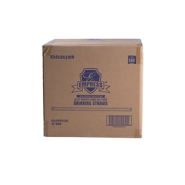 10.25 inch White/Red Stripe Jumbo Straw, Empress, Paper Wrapped 2000/cs