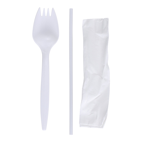 Empress Medium Weight Cutlery Kit Polypro Spork Milk Straw 5.75" Napkin 1000/cs