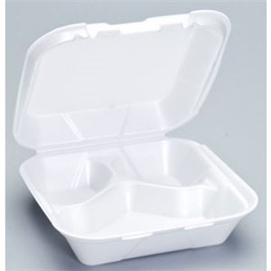 8x8 3 Compartment Medium Foam Hinged Containers White 200/cs