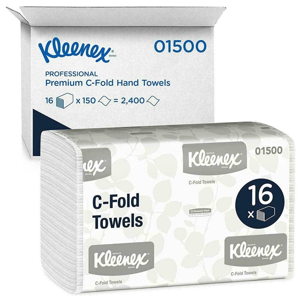 When you're looking for a premium paper towel for your business in a kitchen, office or restroom Kleenex C Fold Paper Towels are a great choice. Even though they re economical, they are packed with innovations that help keep your commercial and business restrooms efficient. The Cfold design is made especially for smart stacking and unfolding, and the built-in Absorbency Pockets (to soak up a lot of water fast) mean that one of the c-fold towels can typically get a drying job done. The unfolded towel measures 10.125 inches wide x 13.15 inches long, and is compatible with most universal tri fold and c-fold dispensers (sold separately). Each wholesale eco pack comes with 150, single-ply recycled white towels. You'll want to buy them in bulk so you'll never run out! When your guests, clients and employees see the trusted Kleenex Brand logo, they'll know you care enough to offer the very best products.