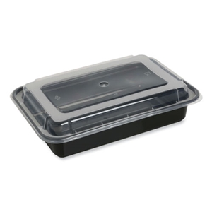 Black base with a clear lid, these food containers are the perfect option for pick-up, delivery or take out. Lid is separate piece. Items are microwave safe.