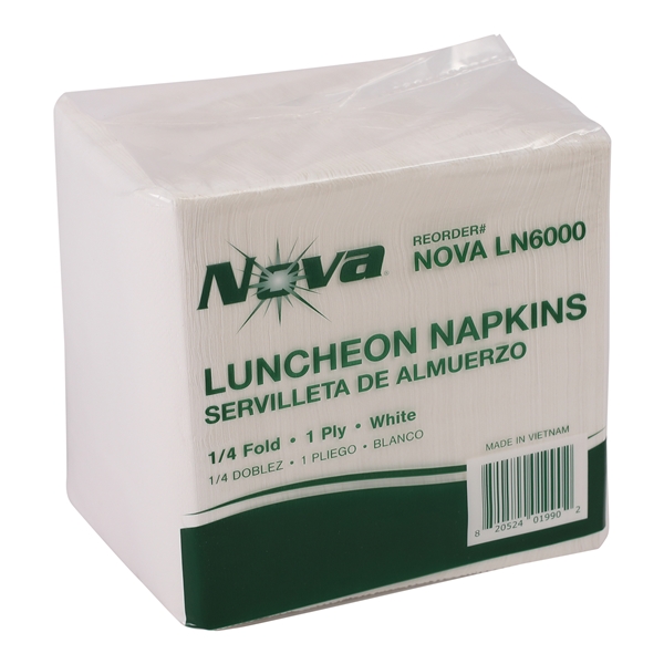 Nova 1-Ply Luncheon Napkin 11.8 x 11.8, White, 1/4 Fold 6000/cs