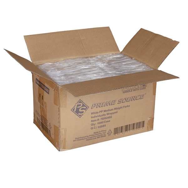 Medium Weight Prime Source Polypropylene Wrapped Fork, White, 1000/cs