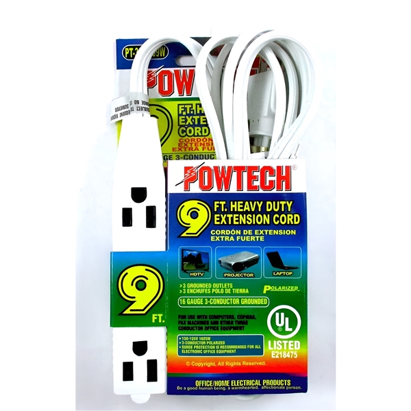 TriSonic 3 Outlet 9 Ft Heavy Duty Extension Cord 13A-125V 1625W Great For HDTV Projector Laptops Offices Home And More